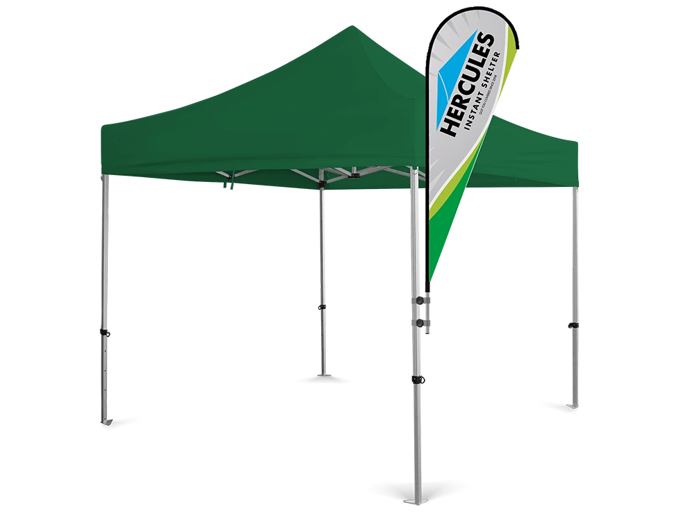 Designed to pair perfectly with your gazebo, our custom flag banners help your setup stand out. Choose from teardrop, feather, or rectangle shapes and print any logo, text, or full-colour design. A professional and portable way to attract attention and impress passersby.