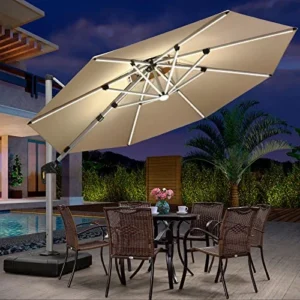 Aluminum is a popular material for umbrella frames due to its lightweight and rust-resistant properties. It’s an excellent choice for areas with high humidity or coastal regions where rust can be a problem. Aluminum frames are easy to maneuver and store, making them great for most residential settings.