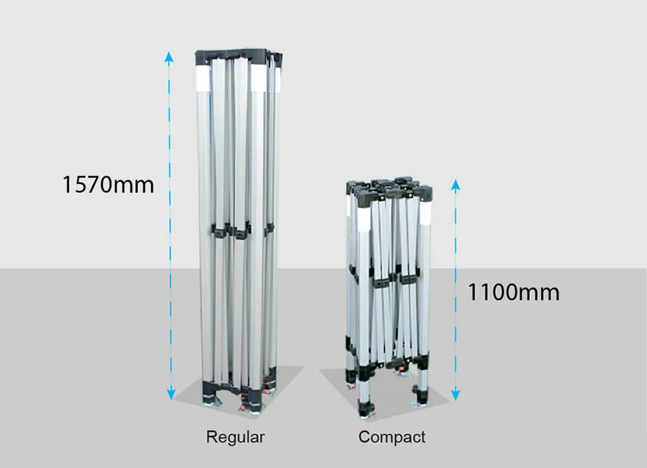 Introducing our new 3×3 m pop-up compact gazebo, based on the popular Hex 45A model. It features a cost-effective, heavy-duty aluminium frame and is designed for easy setup—no tools required. When packed down, it measures just 1100 mm × 320 mm × 320 mm, making it perfect for limited storage space or small vehicles. A space-saving solution ideal for your co-workers!