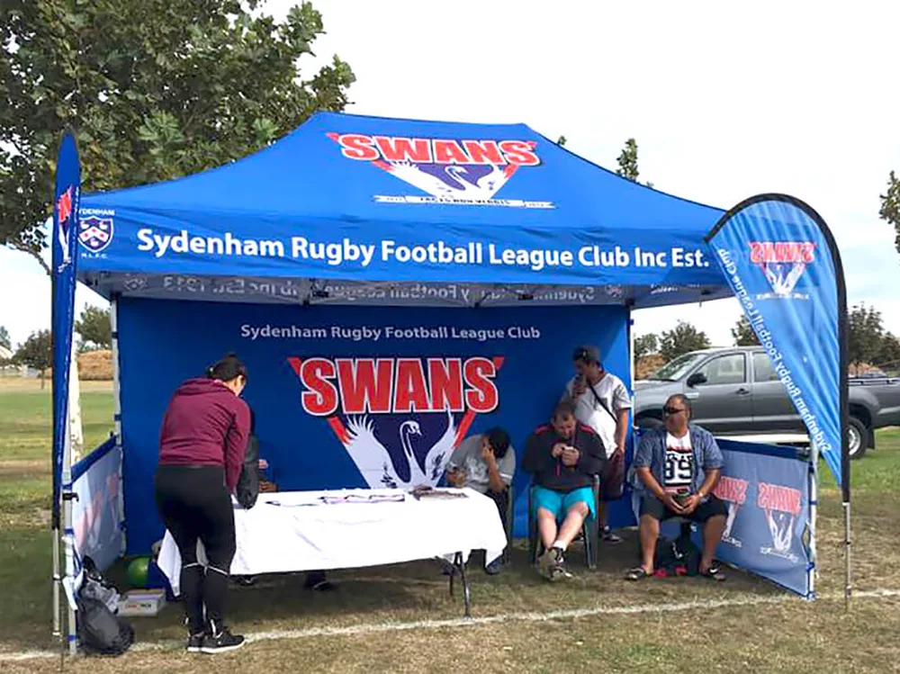 Our gazebo makes relocating events effortlessly with its simple setup and transportable design. It serves as an efficient portable promotional solution for sports clubs.