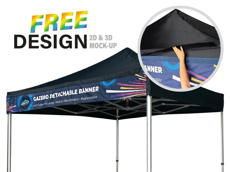 A detachable banner is a versatile promotional accessory that can be conveniently attached and removed from your gazebo canopy. It provides the perfect opportunity to showcase your branding with vibrant logos, slogans, or custom graphics.