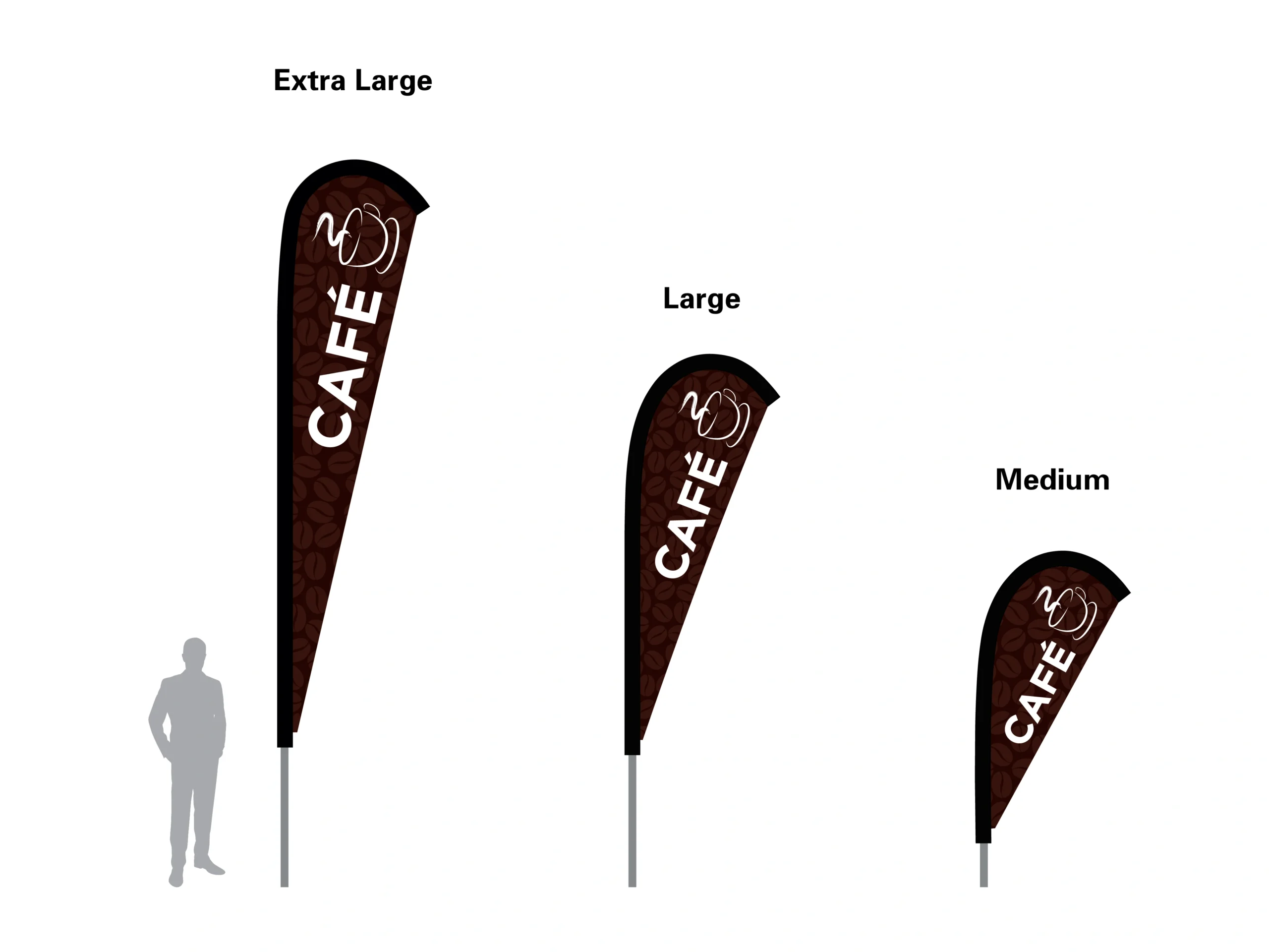 Cafe Teardrop Flag Kit | Double Sided | Commercial Grade – 3 Sizes