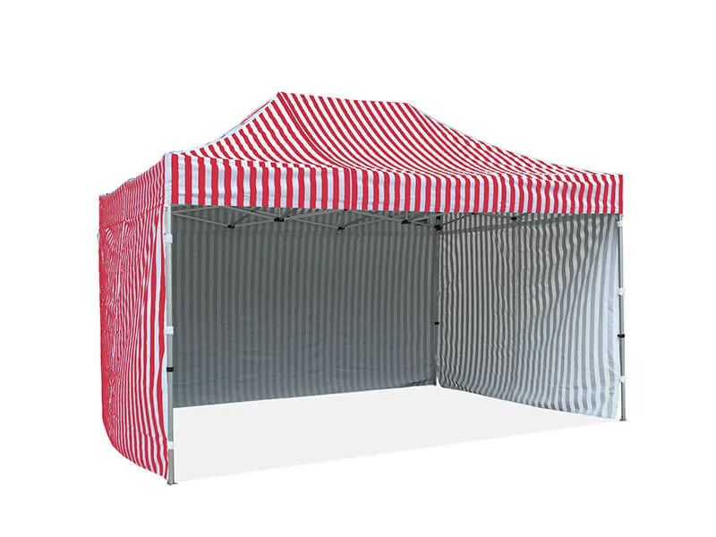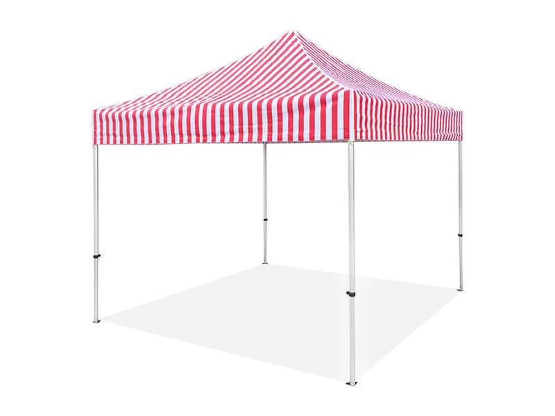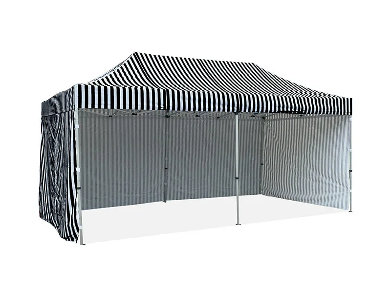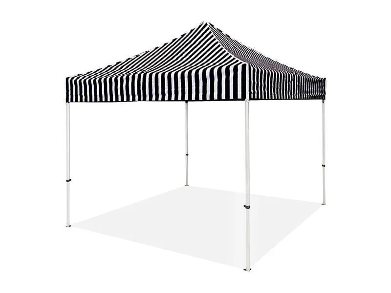 The simple yet classic styling of the stripe canopies and walls, uniquely stripe print to make your market stall warmer and more inviting. The stripe canopies and walls can be added to any of our Hercules Hex. and Pro series gazebo models. If you’re looking for an eye-catching gazebo and your budget is not enough go for a full logo-printed gazebo. This stripe gazebo is the best option. Ideal for markets, business events, outdoor parties, etc.