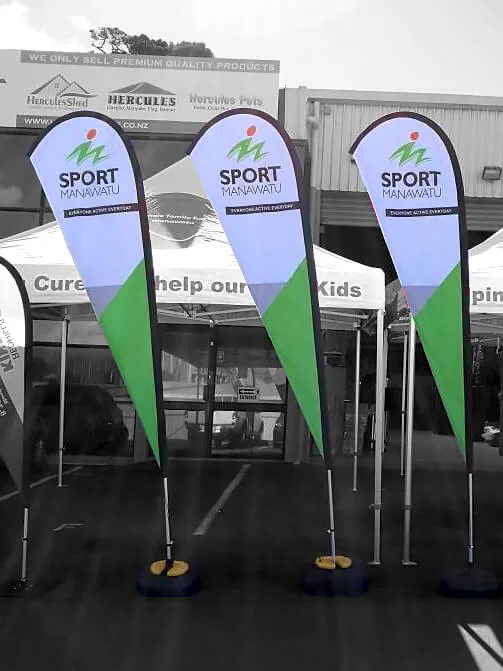 Custom teardrop flag signs for Great Wellington